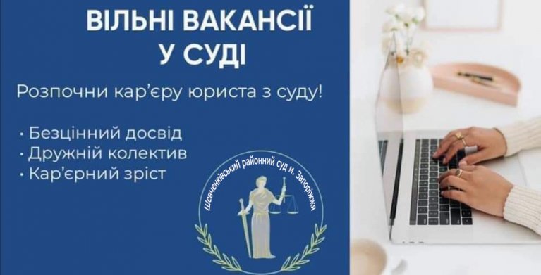 Шевченківський районний суд м. Запоріжжя повідомляє про наявність вакантних посад державної служби категорії «В» (призначення на державну службу відбувається згідно Закону України «Про правовий режим воєнного стану» без конкурсного відбору):